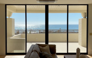 For this stunning oceanfront home, we installed Lutron Sivoia QS Roller Shades, seamlessly integrated into Blindspace flush-mounted hidden pockets. These shades are controlled via a Homeworks QSX system with convenient handheld Pico remotes. To enhance functionality, we incorporated light sensors that automatically adjust the shades based on natural light levels. This not only protects furnishings and flooring from sun damage but also reduces air conditioning costs, improving energy efficiency.